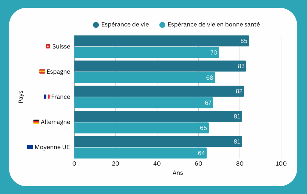 Selon Eurostat, l’espérance de vie moyenne dans l’UE est d’environ 81 ans, mais l’espérance de vie moyenne en bonne santé est plus proche de 64 ans. Cela représente près de 17 ans passés à vivre avec une maladie chronique, de la fatigue ou une mobilité réduite.